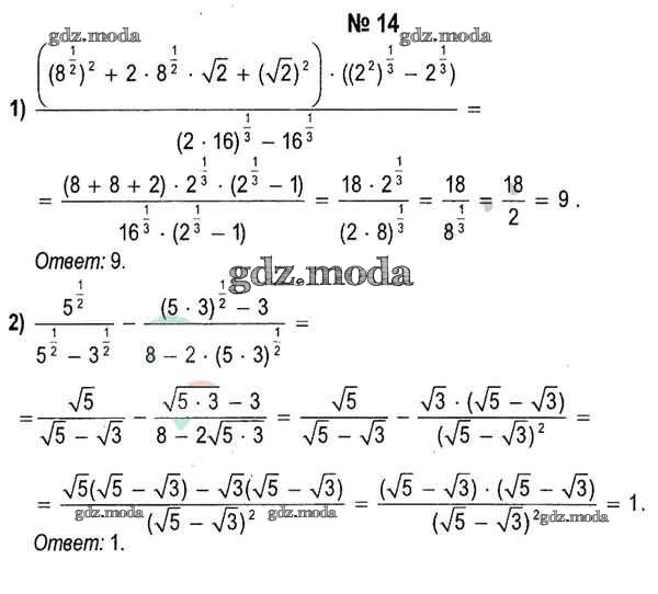 ОТВЕТ на задание № 14 Учебник по Алгебре 11 класс Кузнецова