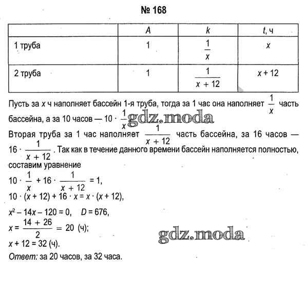 ОТВЕТ на задание № 168 Учебник по Алгебре 11 класс Кузнецова
