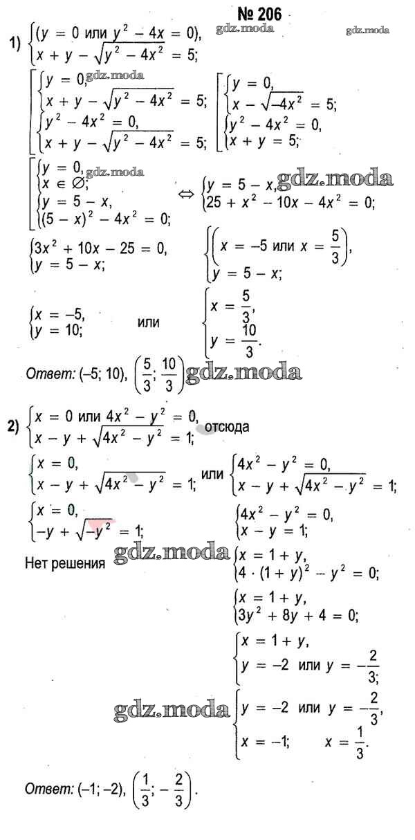 ОТВЕТ на задание № 206 Учебник по Алгебре 11 класс Кузнецова
