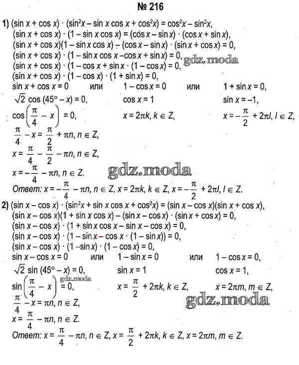 ОТВЕТ на задание № 216 Учебник по Алгебре 11 класс Кузнецова