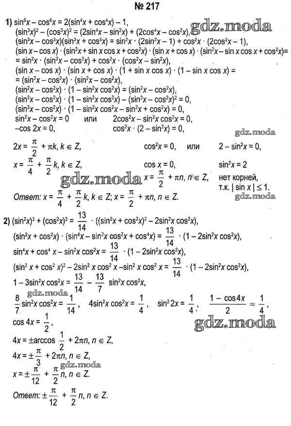 ОТВЕТ на задание № 217 Учебник по Алгебре 11 класс Кузнецова