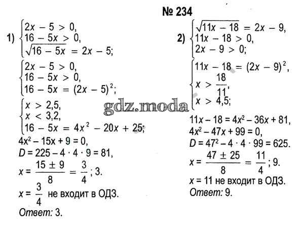 ОТВЕТ на задание № 234 Учебник по Алгебре 11 класс Кузнецова