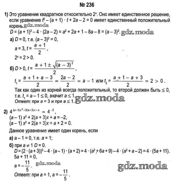 ОТВЕТ на задание № 236 Учебник по Алгебре 11 класс Кузнецова