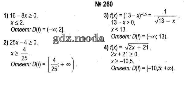 ОТВЕТ на задание № 260 Учебник по Алгебре 11 класс Кузнецова