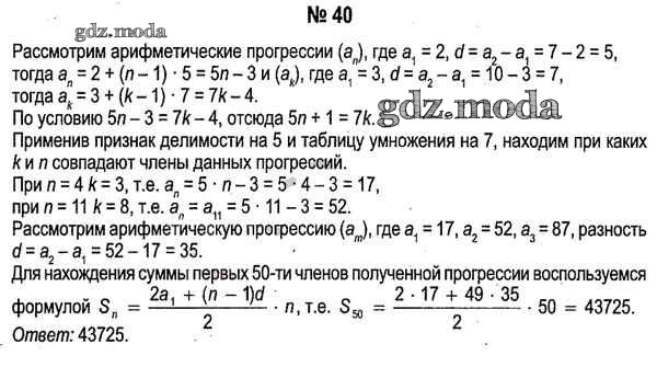 ОТВЕТ на задание № 40 Учебник по Алгебре 11 класс Кузнецова