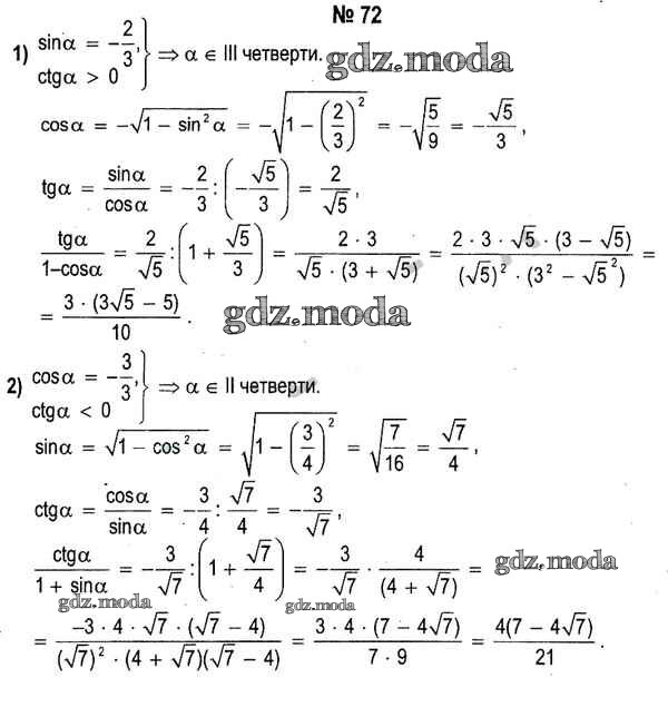 ГДЗ решение к заданию № 72 Алгебра 11 класс Кузнецова Е.П. Народная асвета 2015 бесплатно на гдз.мода!