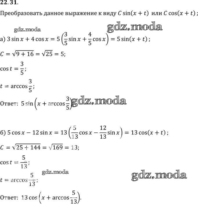 ОТВЕТ на задание № 22.31 Задачник по Алгебре 10-11 класс Мордкович Базовый уровень