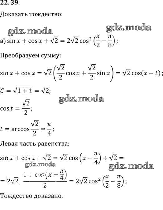 ОТВЕТ на задание № 22.39 Задачник по Алгебре 10-11 класс Мордкович Базовый уровень