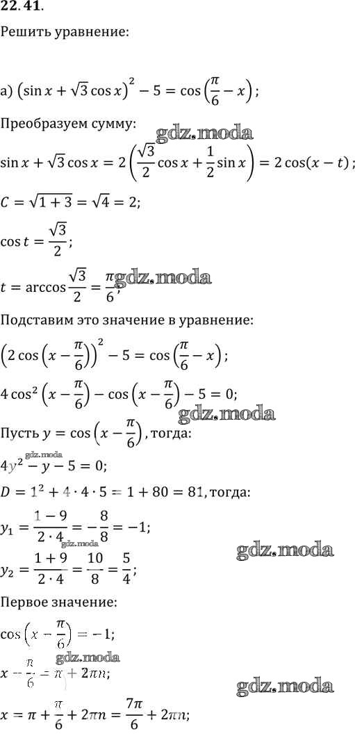 ОТВЕТ на задание № 22.41 Задачник по Алгебре 10-11 класс Мордкович Базовый уровень