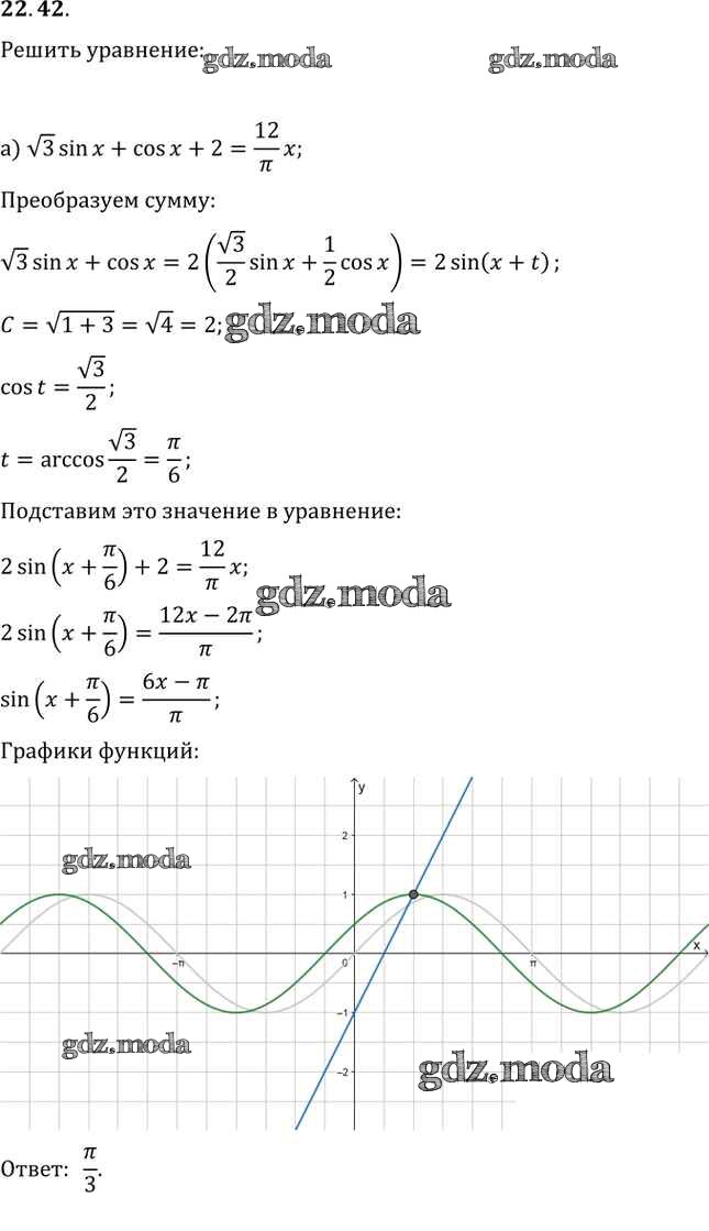 ОТВЕТ на задание № 22.42 Задачник по Алгебре 10-11 класс Мордкович Базовый уровень