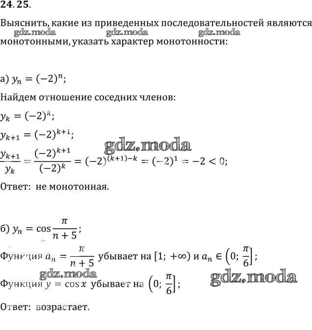 ОТВЕТ на задание № 24.25 Задачник по Алгебре 10-11 класс Мордкович Базовый уровень
