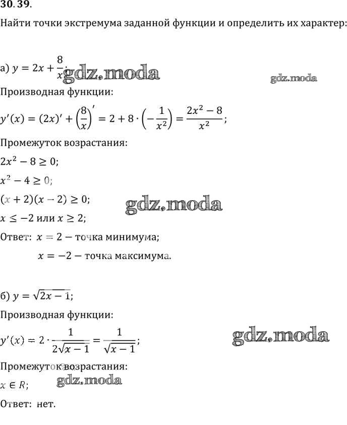 ОТВЕТ на задание № 30.39 Задачник по Алгебре 10-11 класс Мордкович Базовый уровень