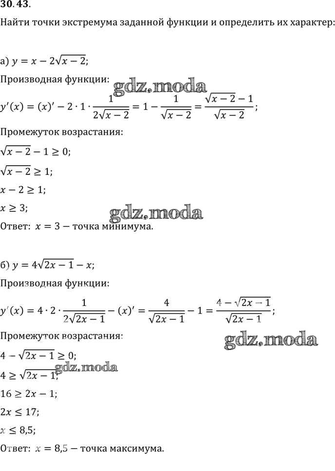 ОТВЕТ на задание № 30.43 Задачник по Алгебре 10-11 класс Мордкович Базовый уровень