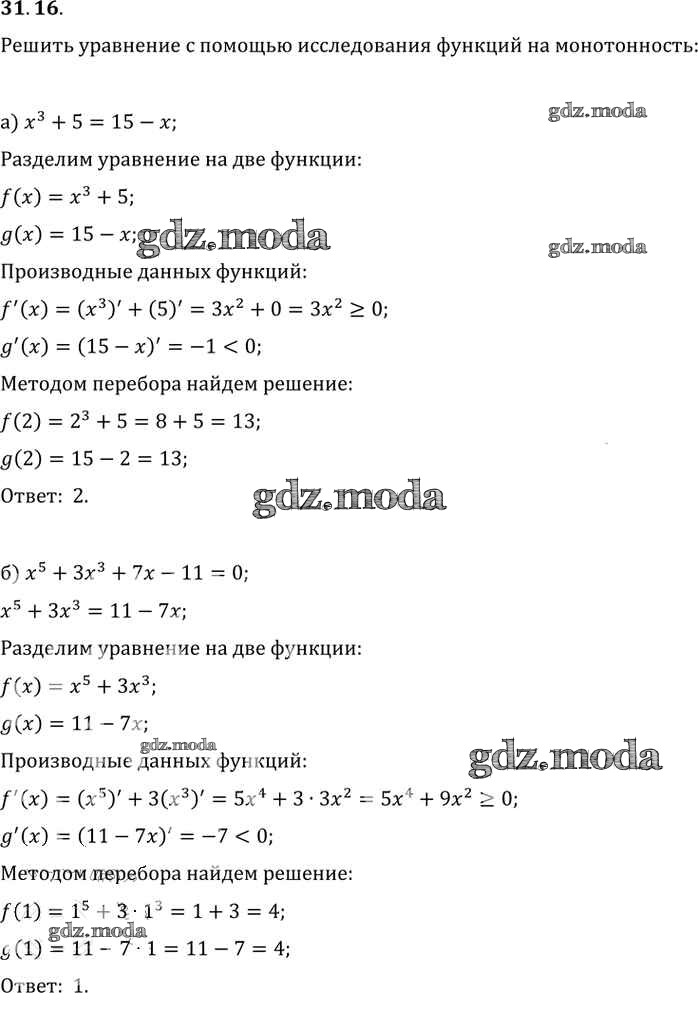 ОТВЕТ на задание № 31.16 Задачник по Алгебре 10-11 класс Мордкович Базовый уровень