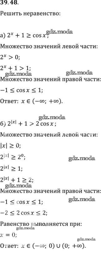 ОТВЕТ на задание № 39.48 Задачник по Алгебре 10-11 класс Мордкович Базовый уровень