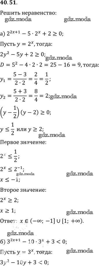 ОТВЕТ на задание № 40. 51 Задачник по Алгебре 10-11 класс Мордкович Базовый уровень