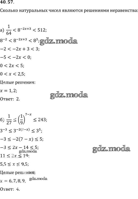 ОТВЕТ на задание № 40. 57 Задачник по Алгебре 10-11 класс Мордкович Базовый уровень