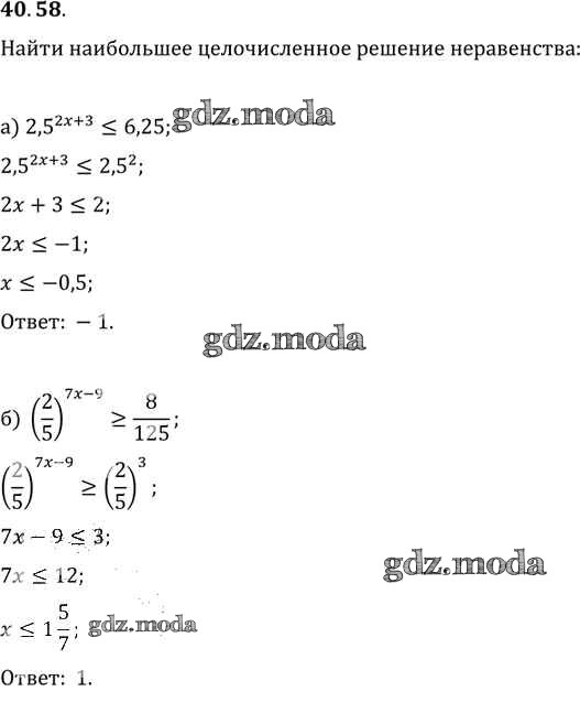 ОТВЕТ на задание № 40. 58 Задачник по Алгебре 10-11 класс Мордкович Базовый уровень