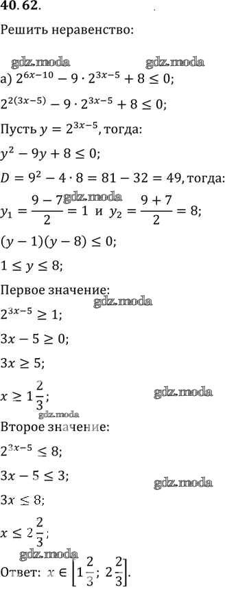 ОТВЕТ на задание № 40. 62 Задачник по Алгебре 10-11 класс Мордкович Базовый уровень