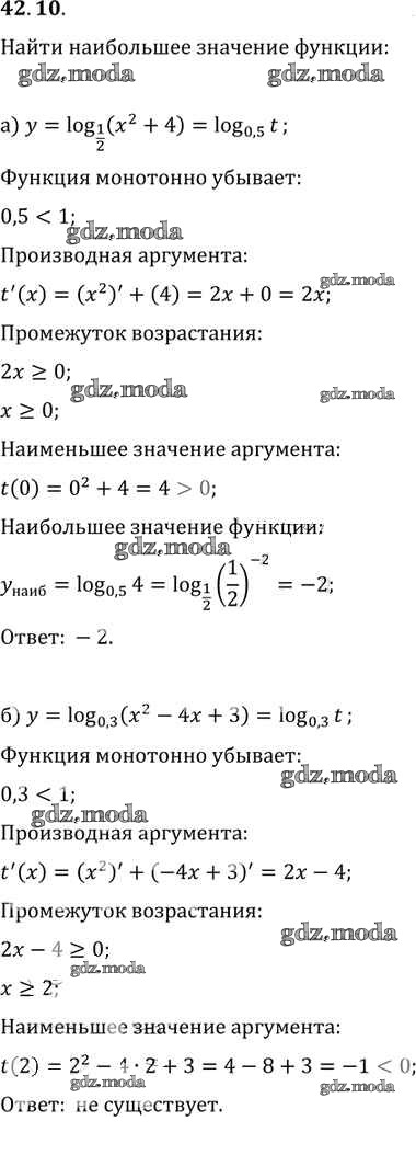 ОТВЕТ на задание № 42. 10 Задачник по Алгебре 10-11 класс Мордкович Базовый уровень