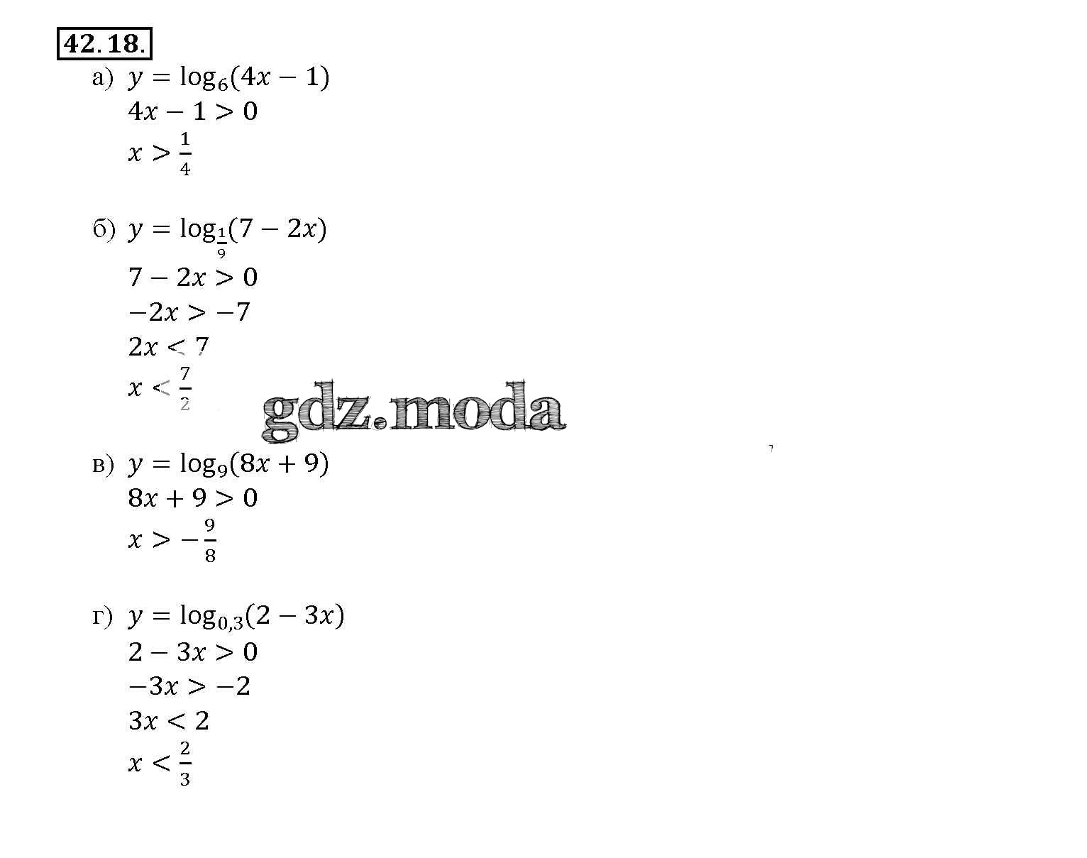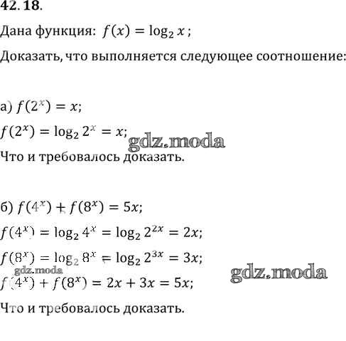 ОТВЕТ на задание № 42. 18 Задачник по Алгебре 10-11 класс Мордкович Базовый уровень