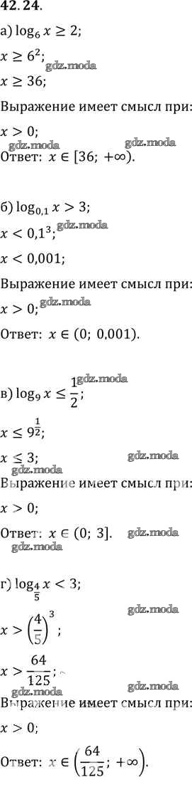 ОТВЕТ на задание № 42. 24 Задачник по Алгебре 10-11 класс Мордкович Базовый уровень