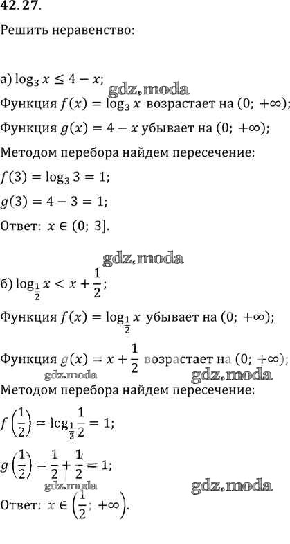 ОТВЕТ на задание № 42. 27 Задачник по Алгебре 10-11 класс Мордкович Базовый уровень