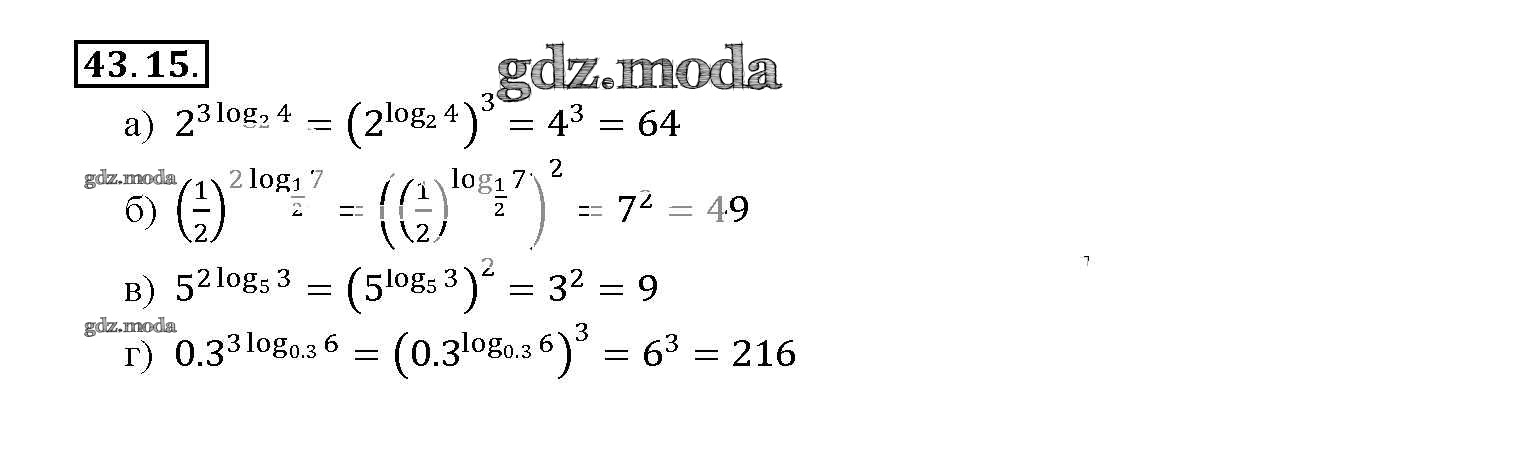 ОТВЕТ на задание № 43. 15 Задачник по Алгебре 10-11 класс Мордкович Базовый уровень
