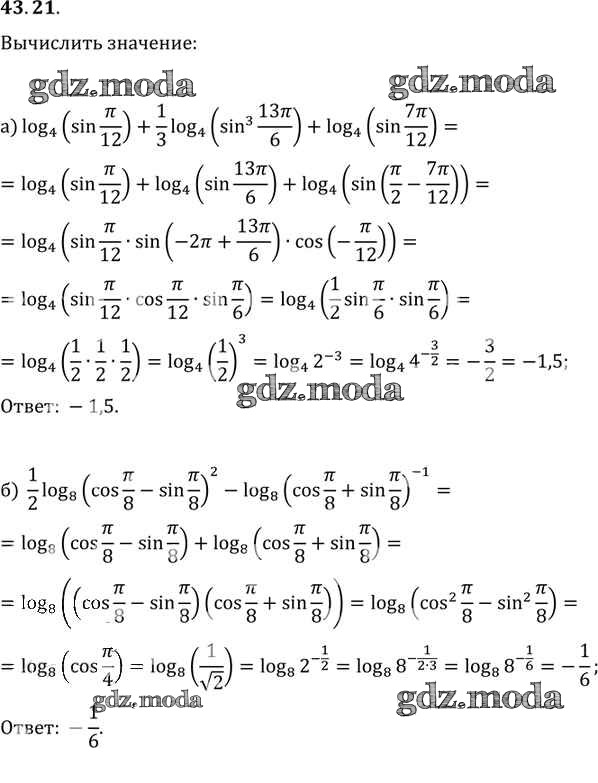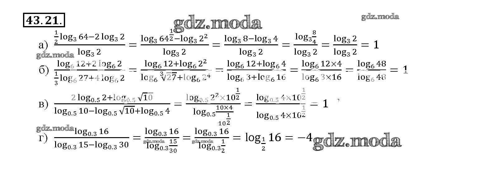 ОТВЕТ на задание № 43. 21 Задачник по Алгебре 10-11 класс Мордкович Базовый уровень