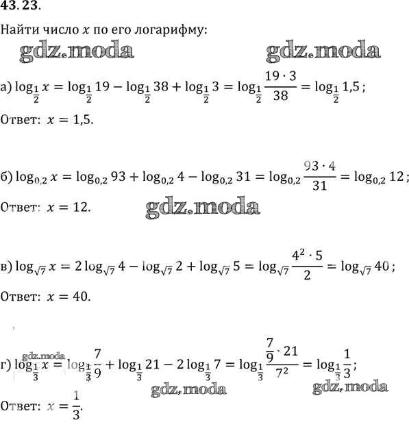 ОТВЕТ на задание № 43. 23 Задачник по Алгебре 10-11 класс Мордкович Базовый уровень