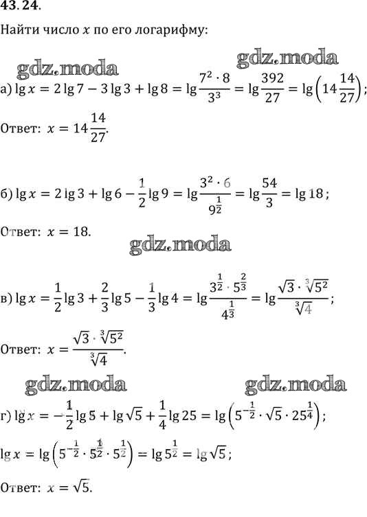 ОТВЕТ на задание № 43. 24 Задачник по Алгебре 10-11 класс Мордкович Базовый уровень