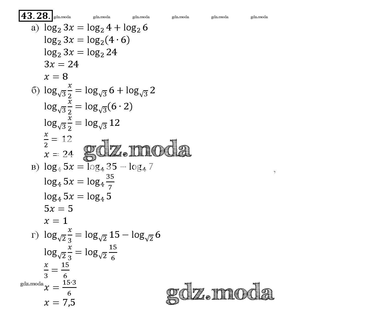 ОТВЕТ на задание № 43. 28 Задачник по Алгебре 10-11 класс Мордкович Базовый уровень