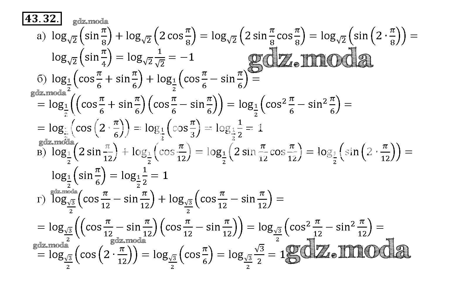 ОТВЕТ на задание № 43. 32 Задачник по Алгебре 10-11 класс Мордкович Базовый уровень