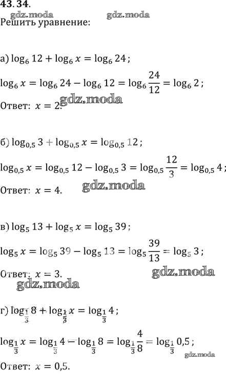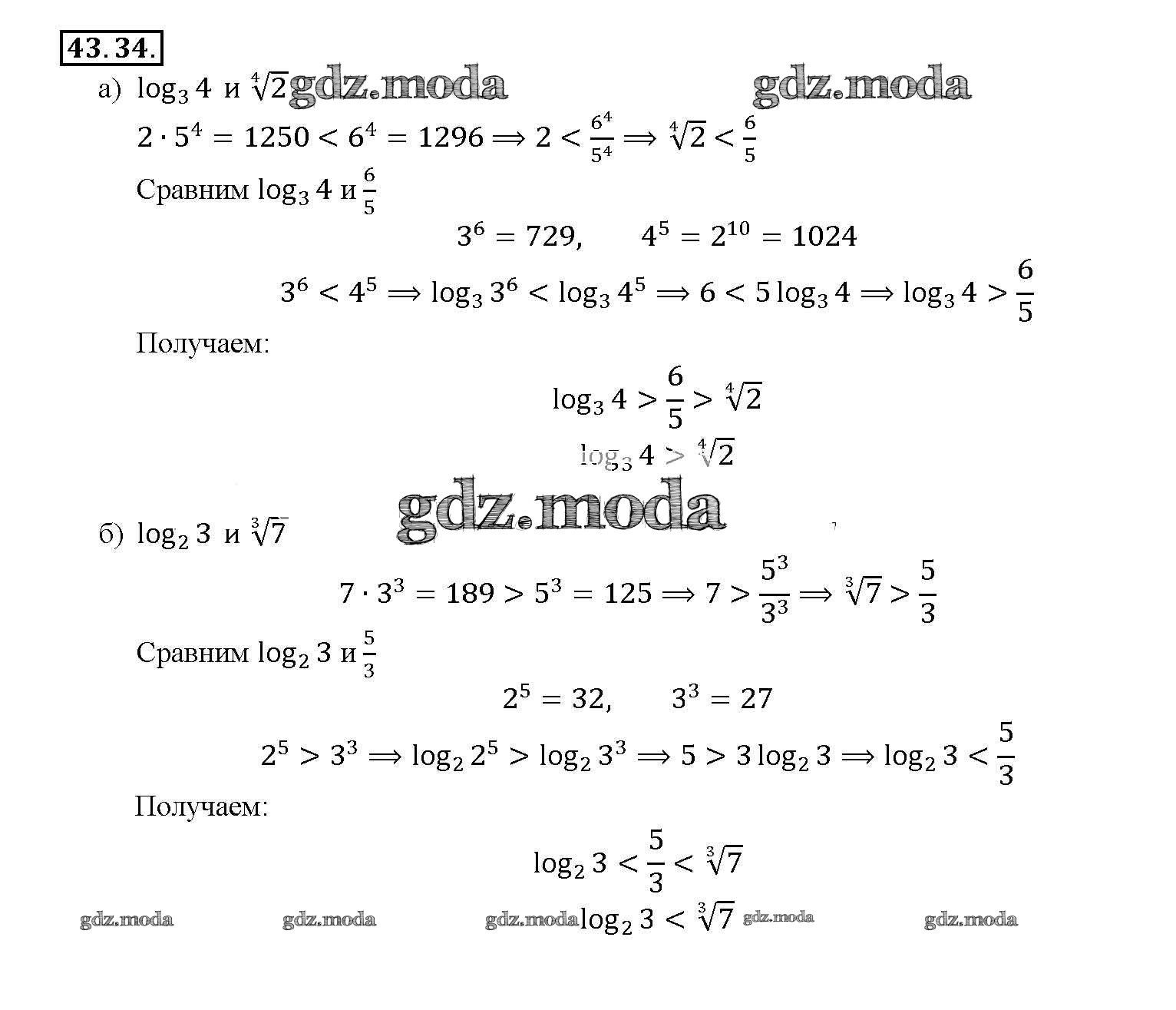 ОТВЕТ на задание № 43. 34 Задачник по Алгебре 10-11 класс Мордкович Базовый уровень