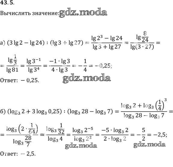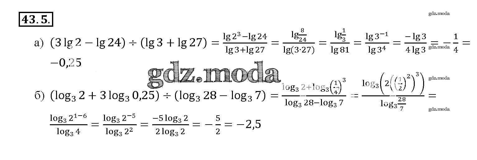 ОТВЕТ на задание № 43. 5 Задачник по Алгебре 10-11 класс Мордкович Базовый уровень