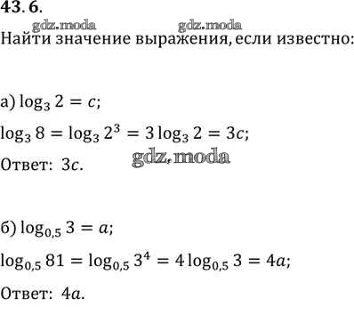 ОТВЕТ на задание № 43. 6 Задачник по Алгебре 10-11 класс Мордкович Базовый уровень