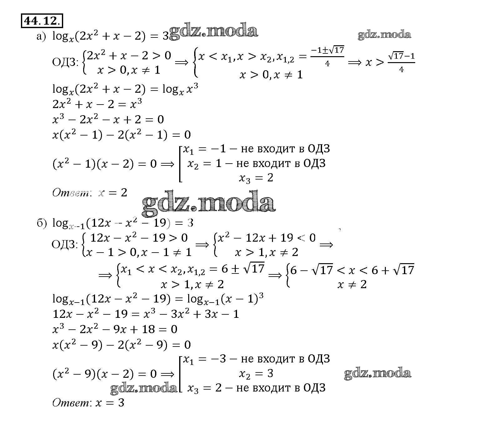 ГДЗ решение к заданию № 44. 12 Алгебра 10-11 класс Задачник Базовый уровень 2 часть Мордкович А.Г. Мнемозина 2015 Часть 2 Базовый уровень ФГОС бесплатно на гдз.мода!