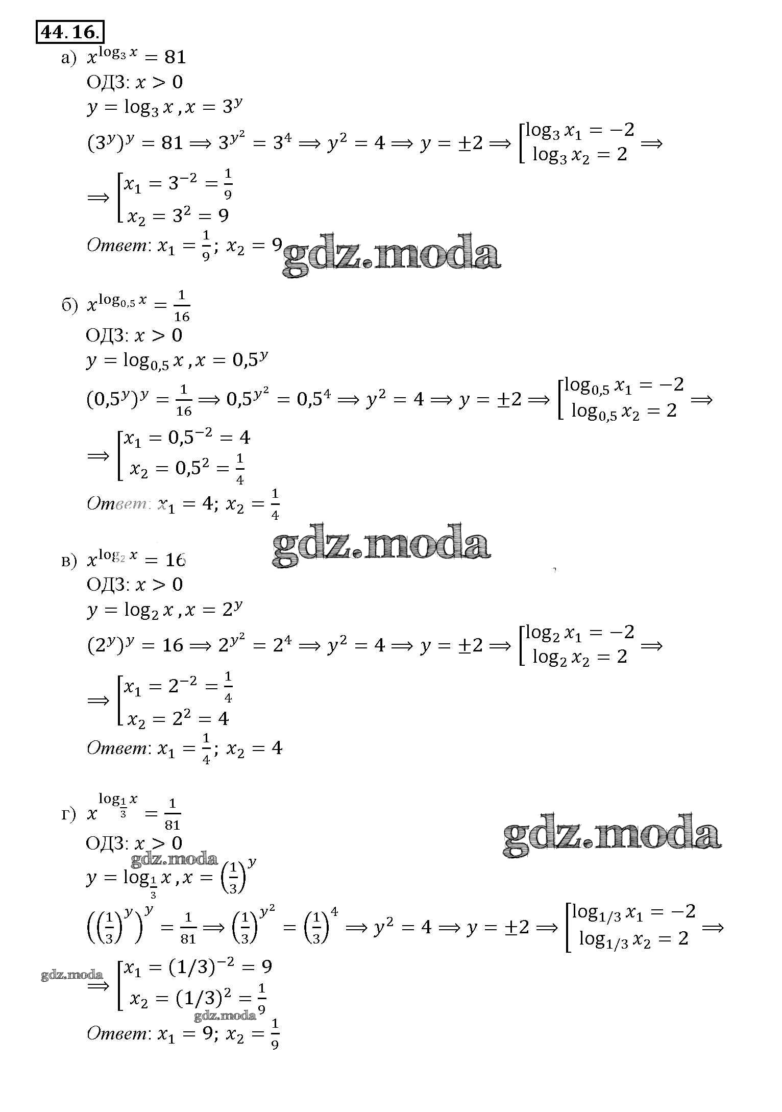 ОТВЕТ на задание № 44. 16 Задачник по Алгебре 10-11 класс Мордкович Базовый уровень