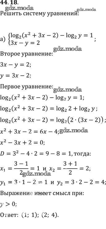 ГДЗ решение к заданию № 44. 18 Алгебра 10-11 класс Задачник Базовый уровень 2 часть Мордкович А.Г. Мнемозина 2015 Часть 2 Базовый уровень ФГОС бесплатно на гдз.мода!