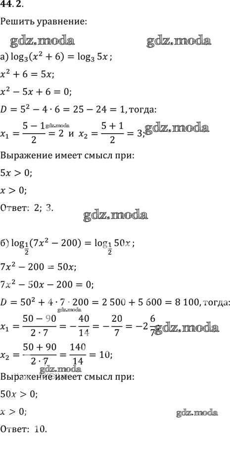 ОТВЕТ на задание № 44. 2 Задачник по Алгебре 10-11 класс Мордкович Базовый уровень