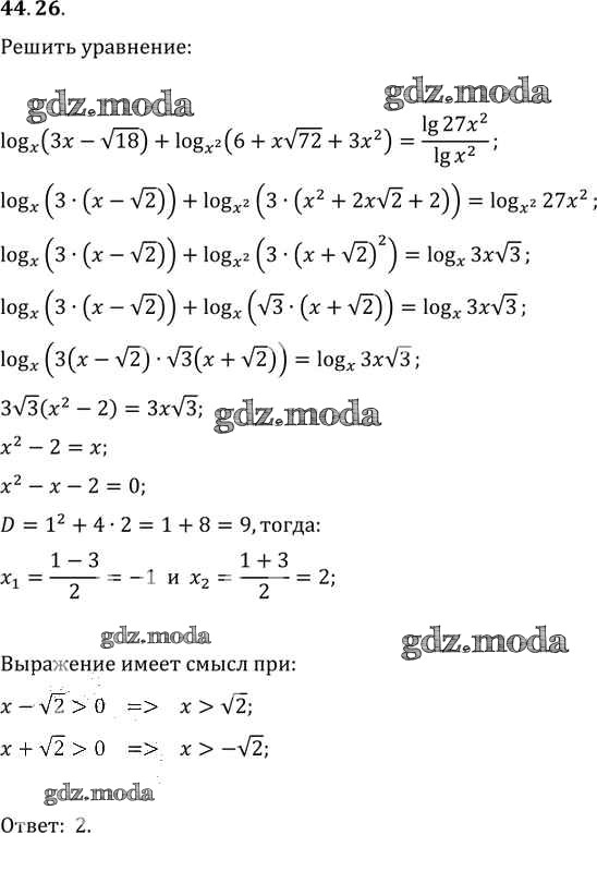 ОТВЕТ на задание № 44. 26 Задачник по Алгебре 10-11 класс Мордкович Базовый уровень