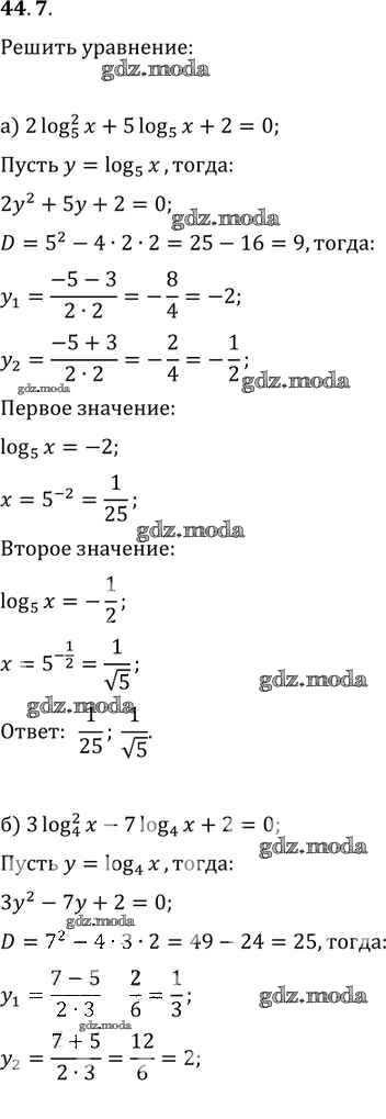 ОТВЕТ на задание № 44. 7 Задачник по Алгебре 10-11 класс Мордкович Базовый уровень