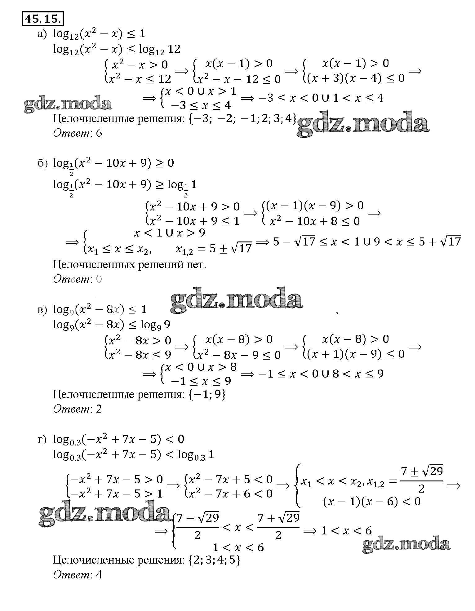 ГДЗ решение к заданию № 45. 15 Алгебра 10-11 класс Задачник Базовый уровень 2 часть Мордкович А.Г. Мнемозина 2015 Часть 2 Базовый уровень ФГОС бесплатно на гдз.мода!