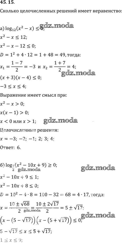 ОТВЕТ на задание № 45. 15 Задачник по Алгебре 10-11 класс Мордкович Базовый уровень