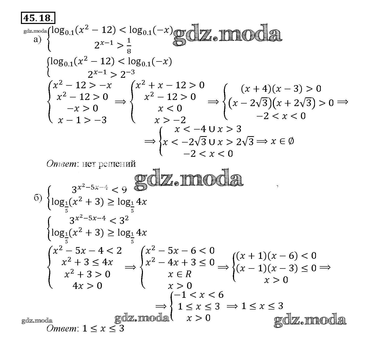 ГДЗ решение к заданию № 45. 18 Алгебра 10-11 класс Задачник Базовый уровень 2 часть Мордкович А.Г. Мнемозина 2015 Часть 2 Базовый уровень ФГОС бесплатно на гдз.мода!