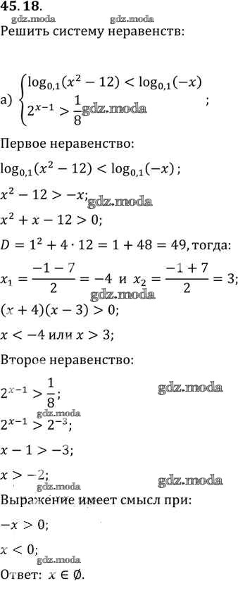 ОТВЕТ на задание № 45. 18 Задачник по Алгебре 10-11 класс Мордкович Базовый уровень