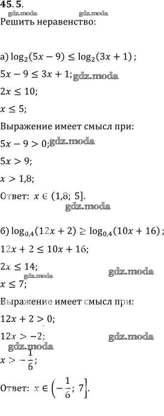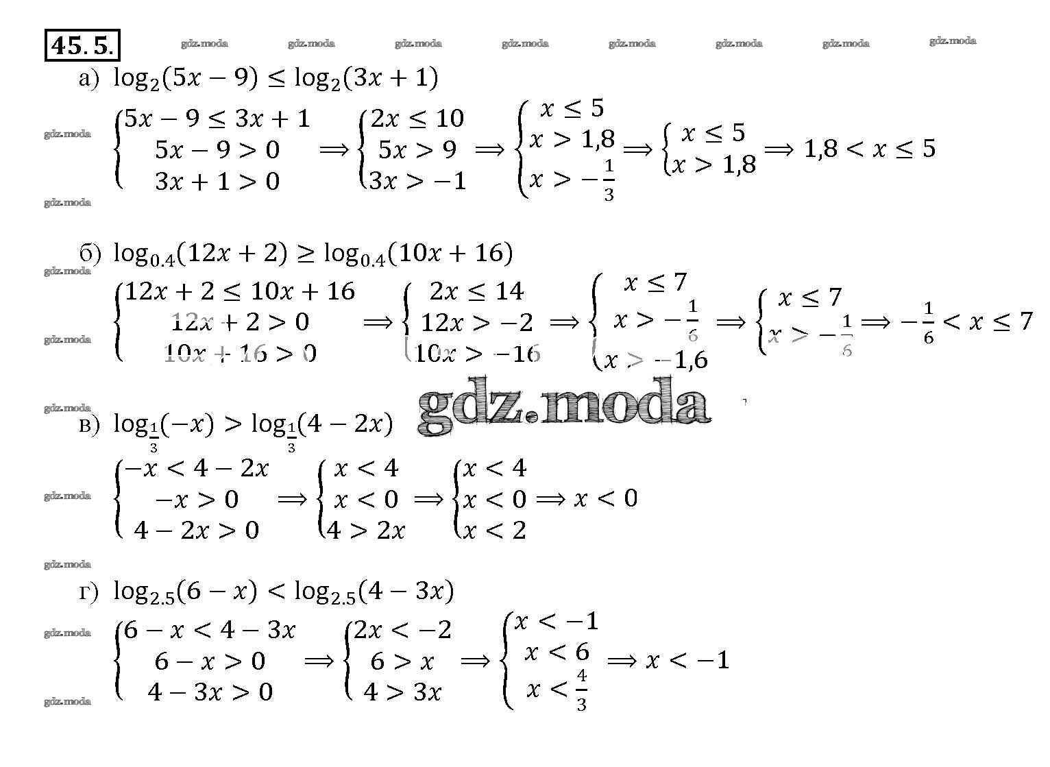 ГДЗ решение к заданию № 45. 5 Алгебра 10-11 класс Задачник Базовый уровень 2 часть Мордкович А.Г. Мнемозина 2015 Часть 2 Базовый уровень ФГОС бесплатно на гдз.мода!