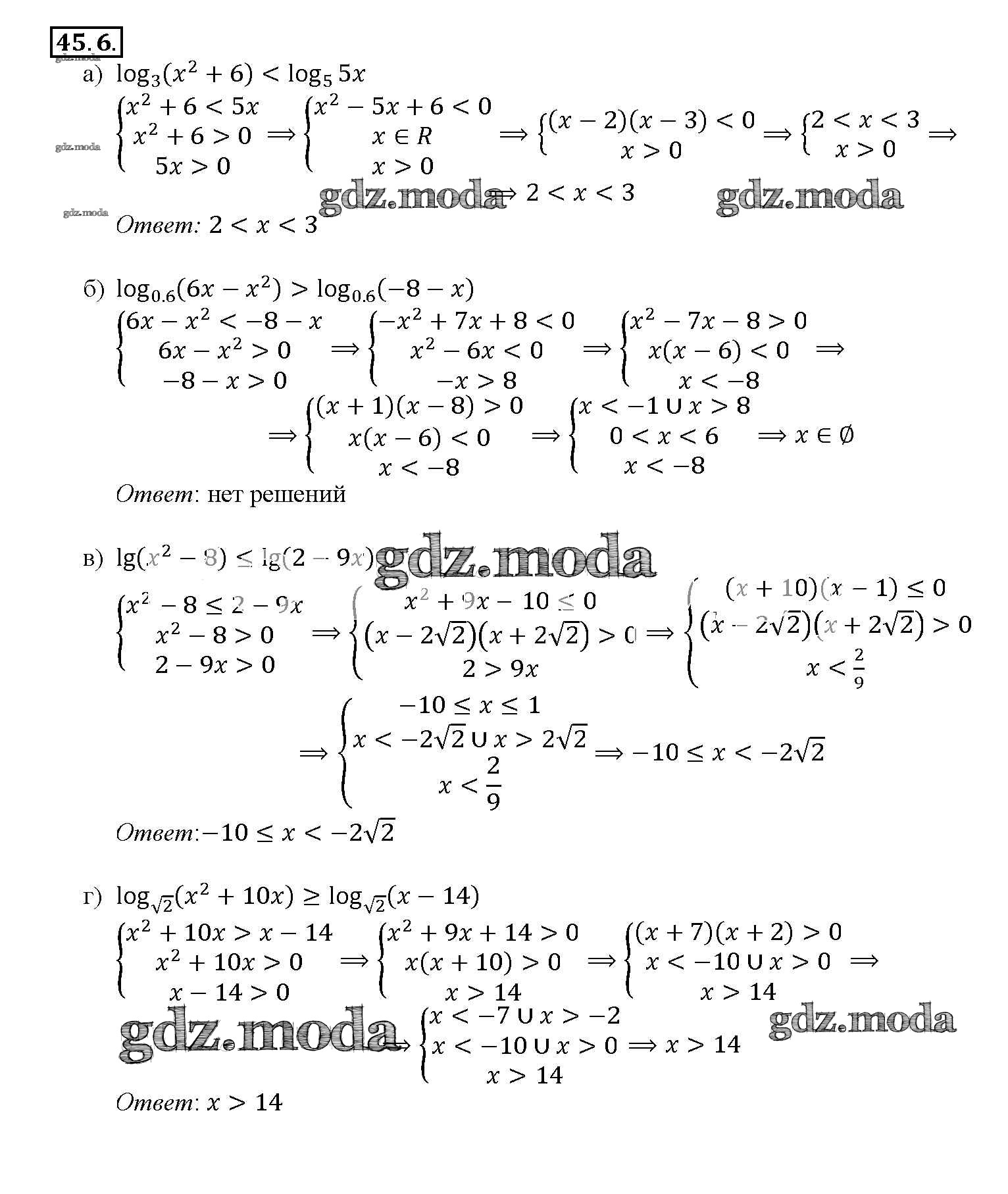 ОТВЕТ на задание № 45. 6 Задачник по Алгебре 10-11 класс Мордкович Базовый уровень