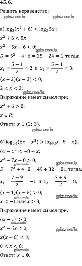 ГДЗ решение к заданию № 45. 6 Алгебра 10-11 класс Задачник Базовый уровень 2 часть Мордкович А.Г. Мнемозина 2015 Часть 2 Базовый уровень ФГОС бесплатно на гдз.мода!