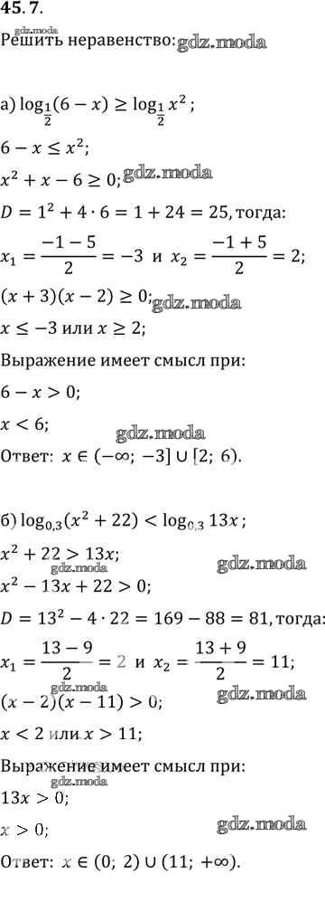 ГДЗ решение к заданию № 45. 7 Алгебра 10-11 класс Задачник Базовый уровень 2 часть Мордкович А.Г. Мнемозина 2015 Часть 2 Базовый уровень ФГОС бесплатно на гдз.мода!